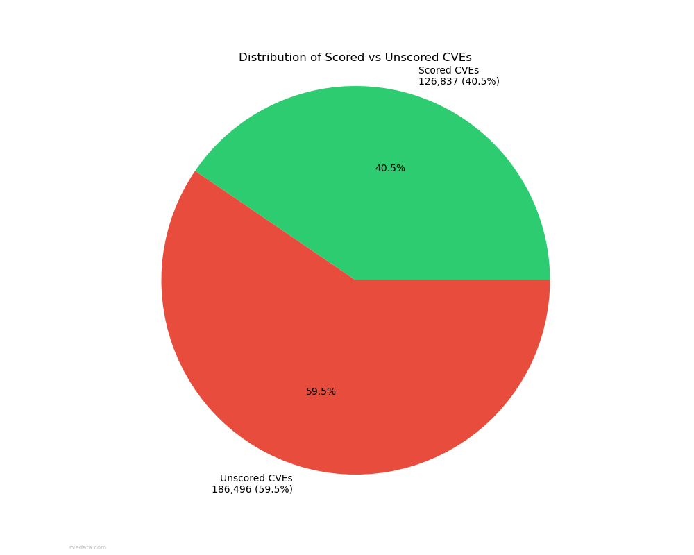 Roughly 60% of CVEs have no score at all, unless you enrich them from elsewhere like NVD. Six months ago it was 66%. So yes, it’s improving, but slowly. But that still means most vulnerabilities don’t even have a CVSS number yet.