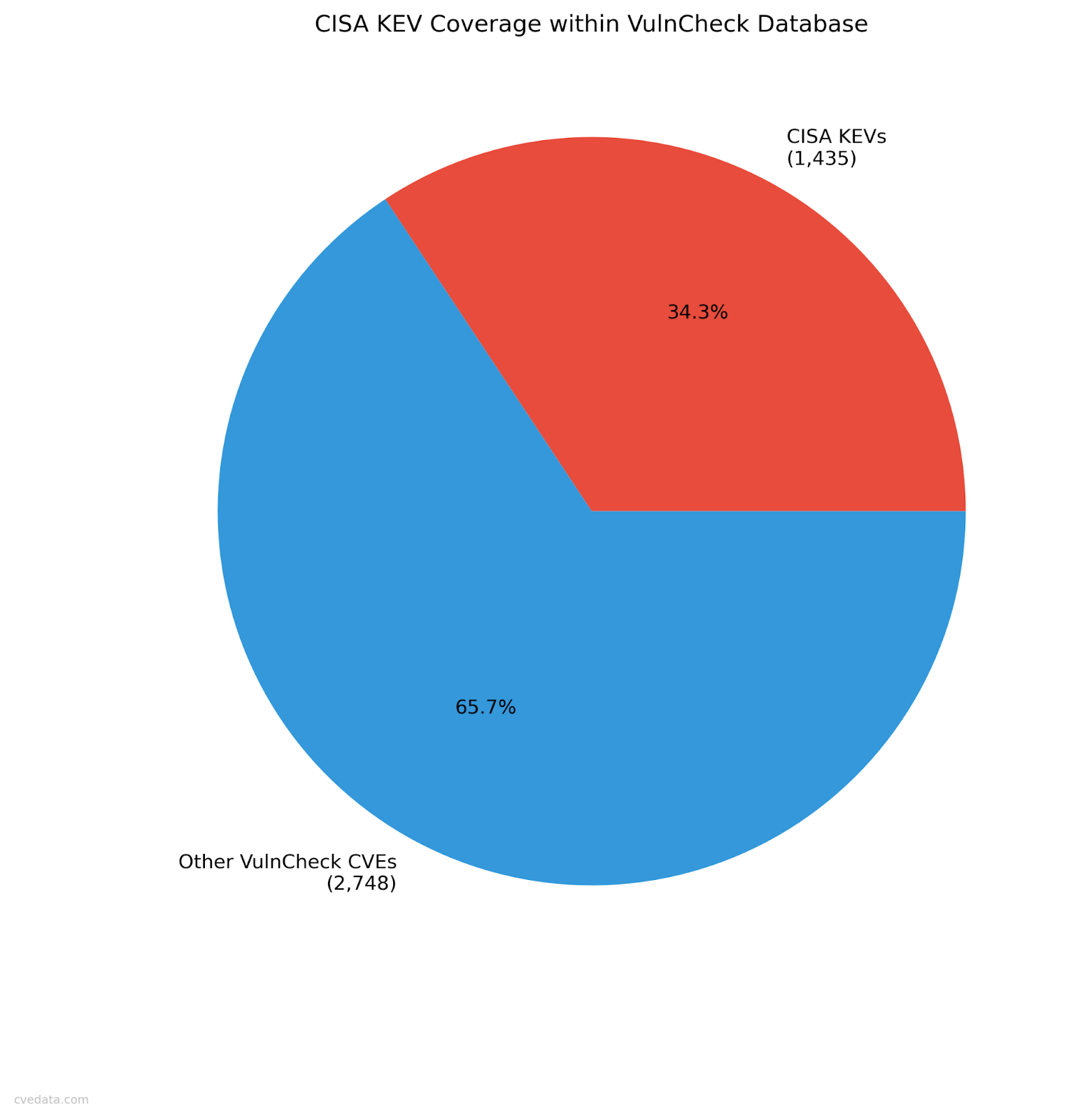 VulnCheck’s database (VulnCheck DB) has around 4,167 known exploited vulnerabilities, roughly 3x larger than KEV. That’s the most realistic corpus we have today, in our analysis, and therefore we think it is the most accurately representative of the vulns in actual use of any public list at the moment (kudos to Patrick Garrity btw).