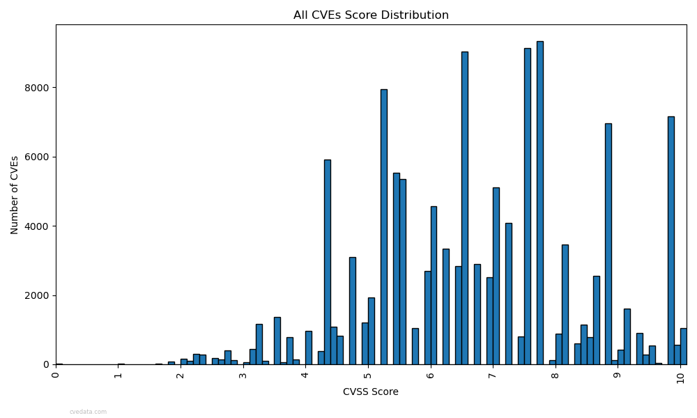 If you plot all CVSS scores, you’ll get a quasi-bell curve… it’s not random, not flat, but clearly engineered. Certain scores (like 7.8) appear far more often, while others (like 0.5) literally cannot exist due to how the rounding and multipliers work.