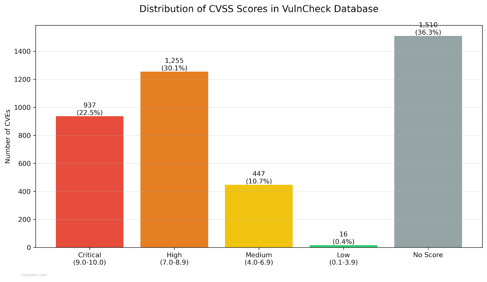 Roughly 60% of CVEs have no score at all, unless you enrich them from elsewhere like NVD. Six months ago it was 66%. So yes, it’s improving, but slowly. But that still means most vulnerabilities don’t even have a CVSS number yet.