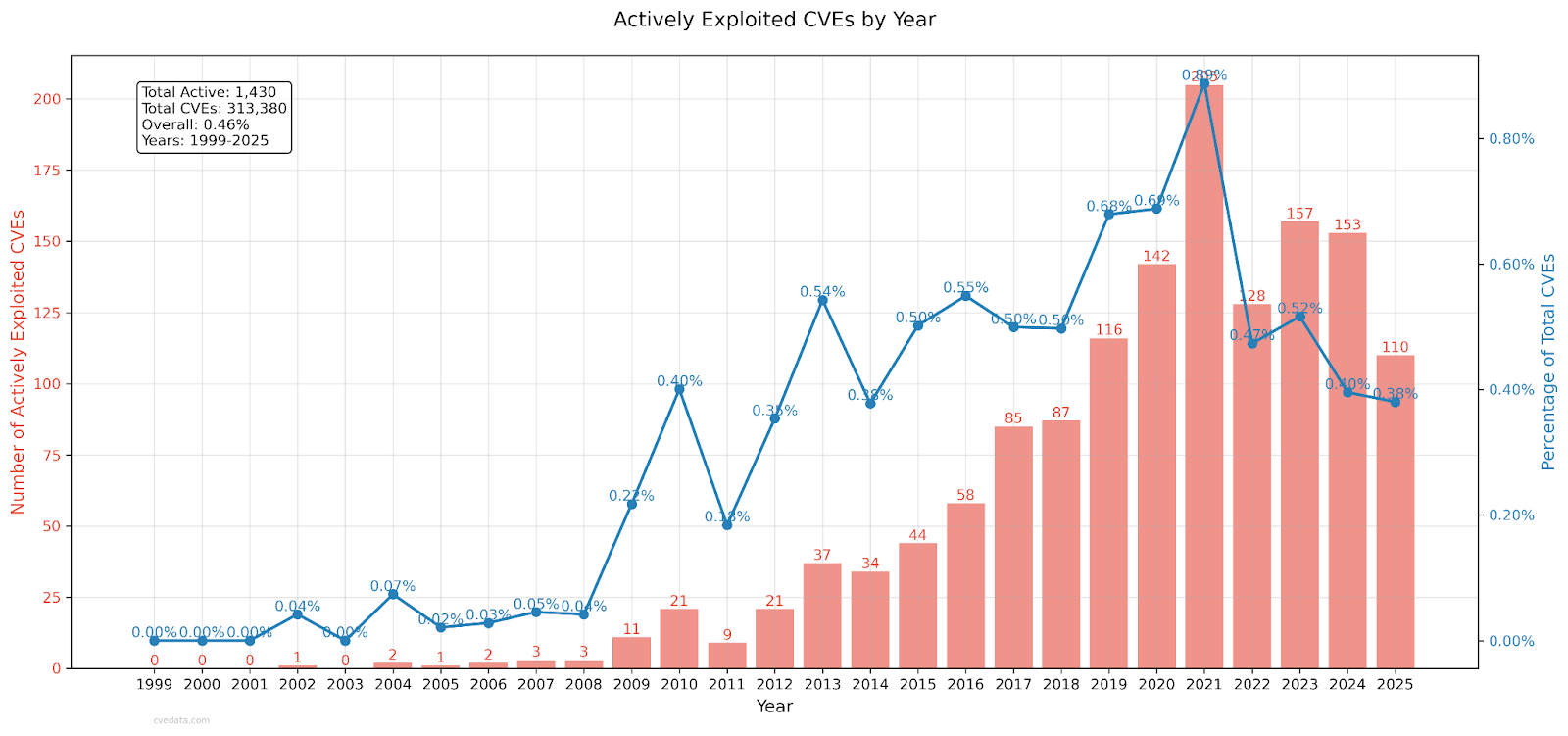 Attackers also don’t care about recency. They happily exploit vulns going back to 2002. The “0day” obsession isn’t supported by CISAs data, older bugs from ~5 years ago get reused more often than the more recent ones.